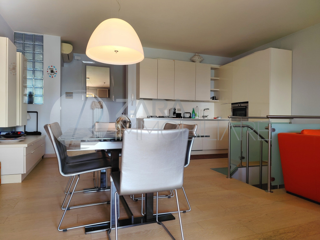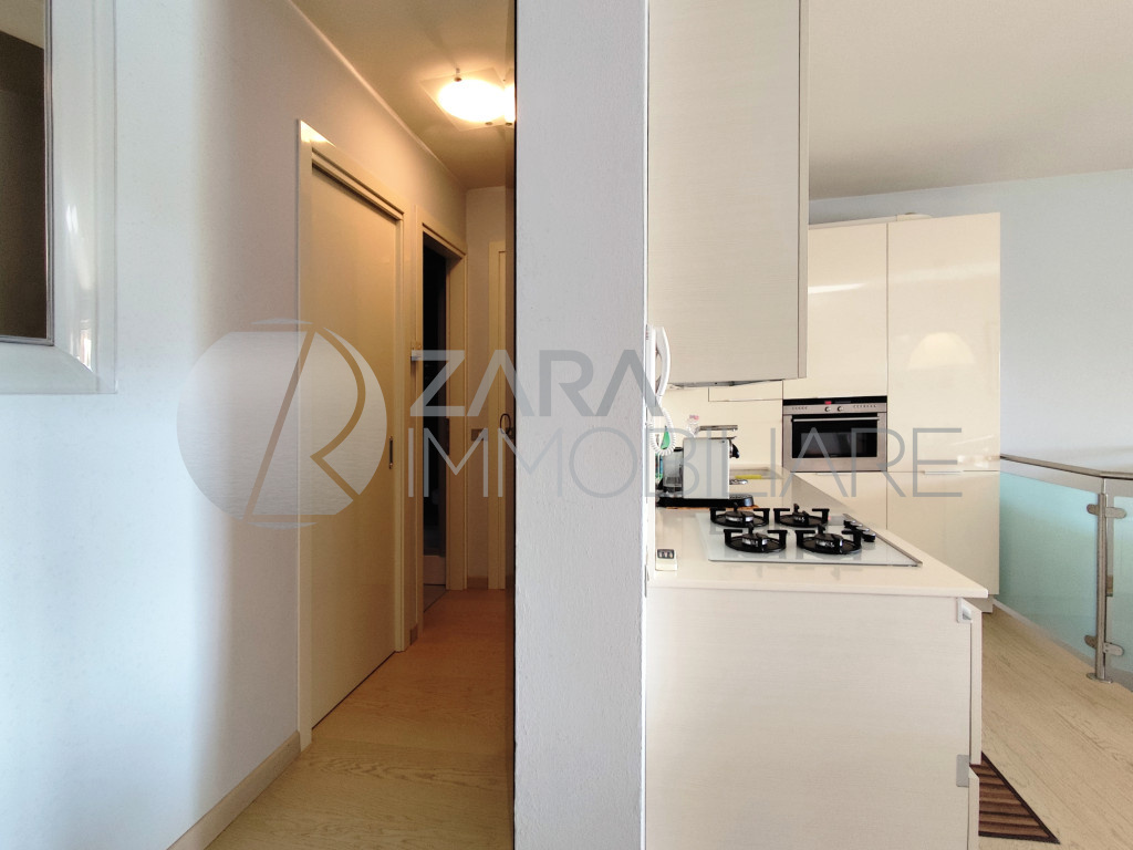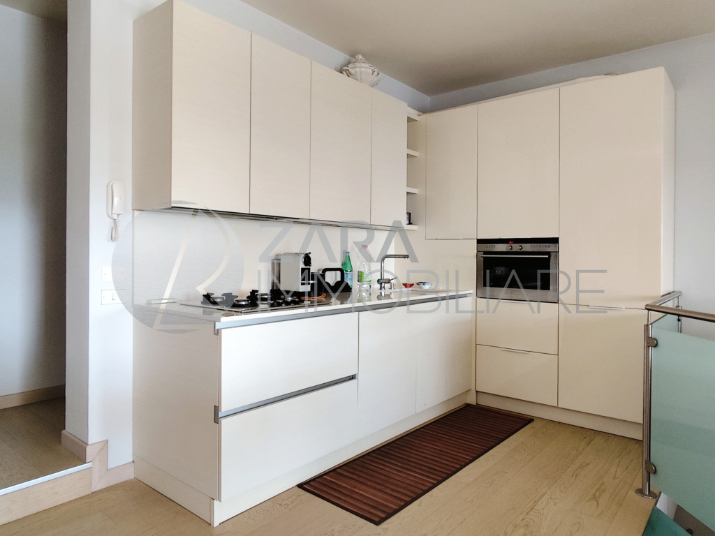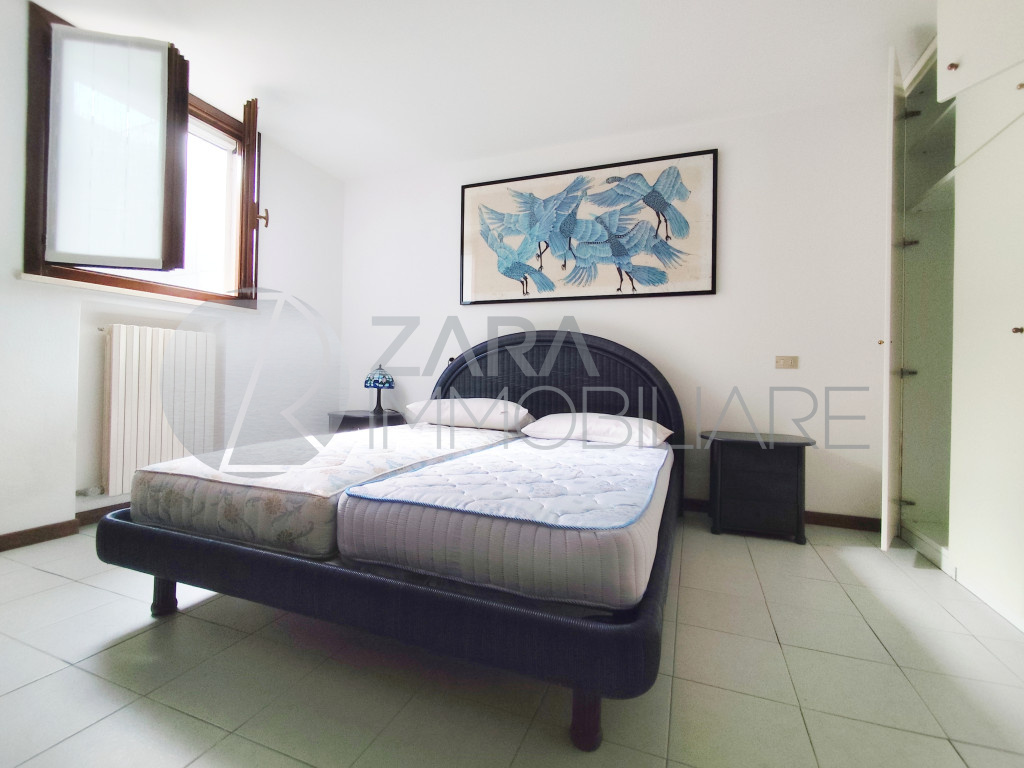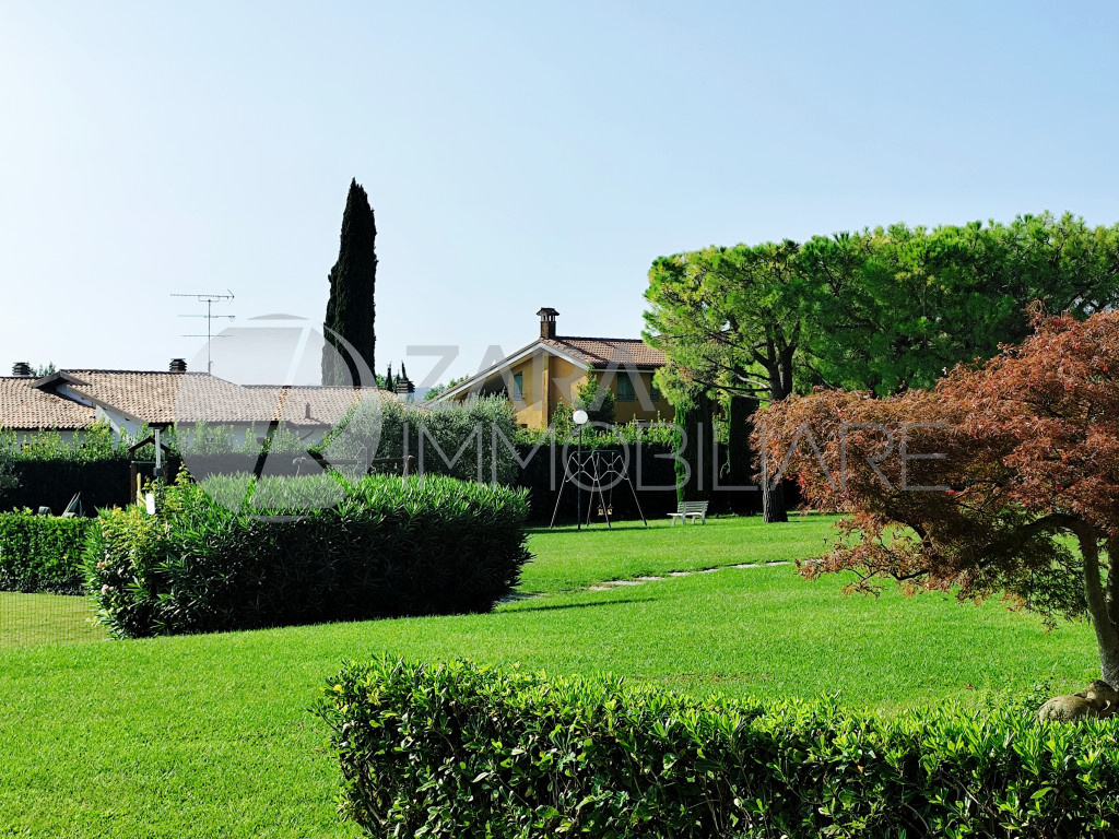 Ingresso, ampio soggiorno con cottura, camera matrimoniale, bagno e ripostiglio. Dal soggiorno si accede al piano interrato con una stanza e un bagno (ottimamente illuminato e arieggiato con bocche di lupo). Comodo portico con vista lago e giardino privato che si collega con il parco condominiale. Completano la proprietà un garage, un posto auto e una cantina.