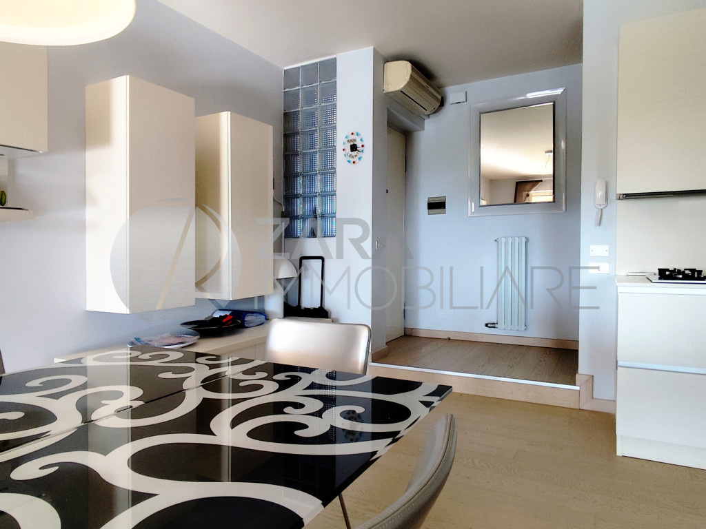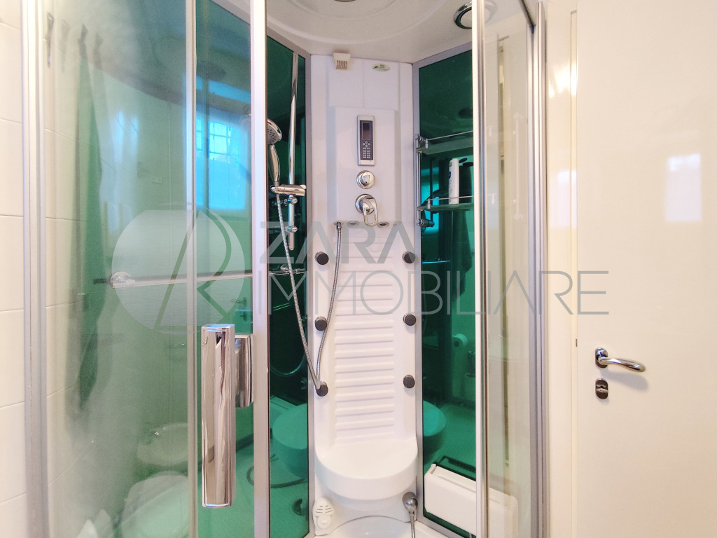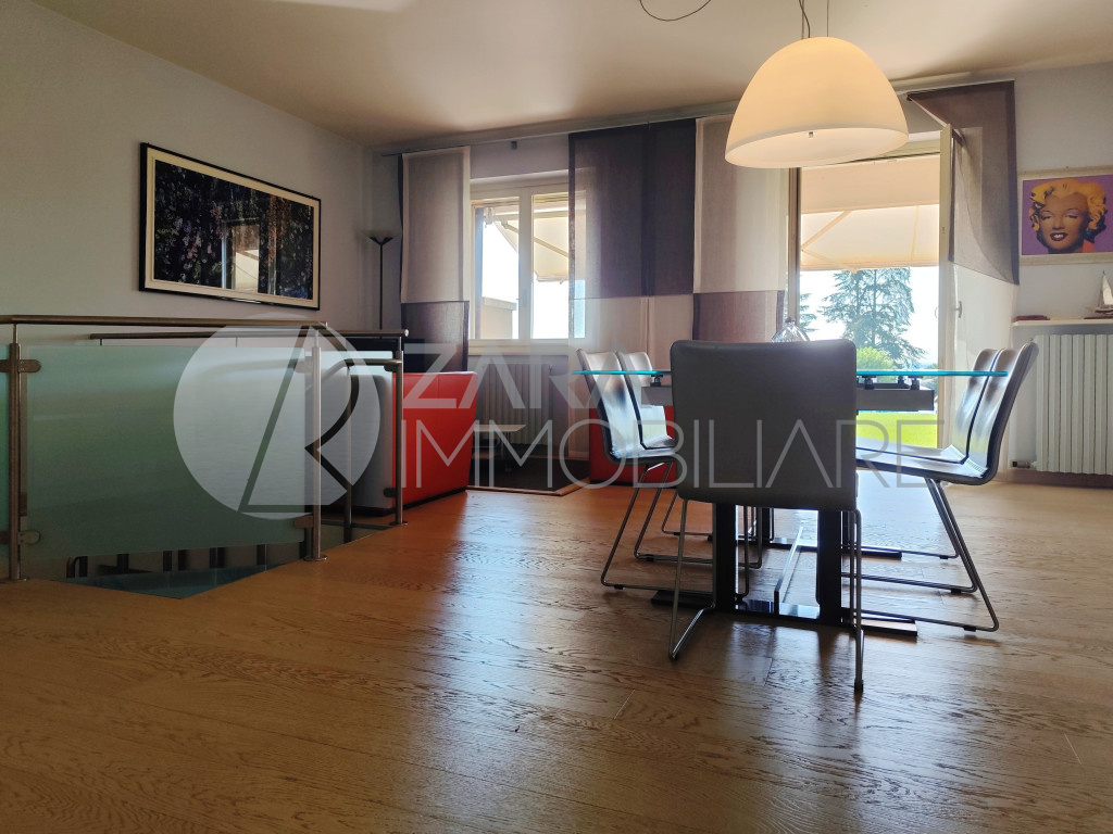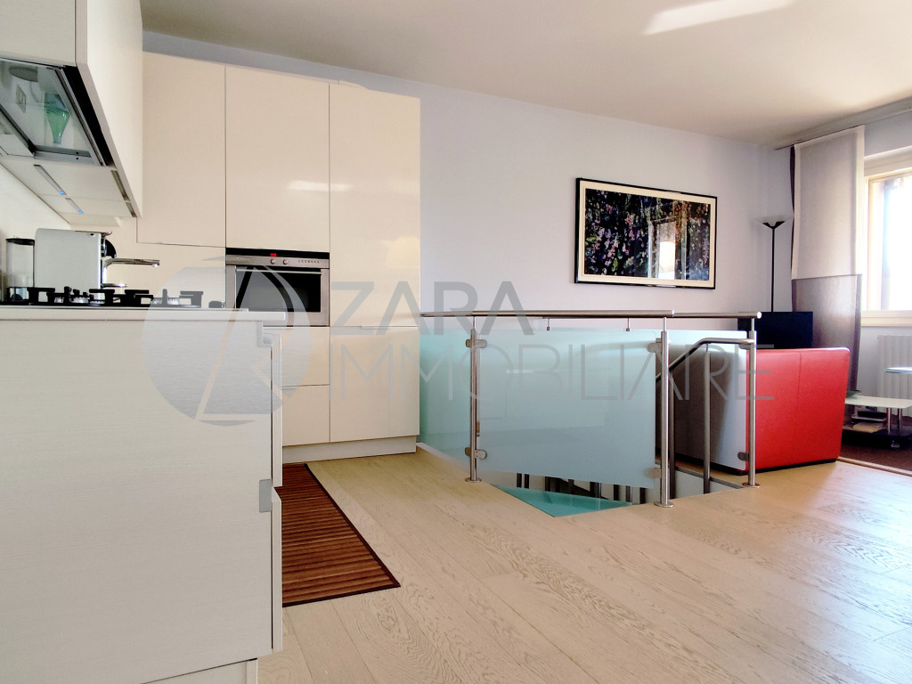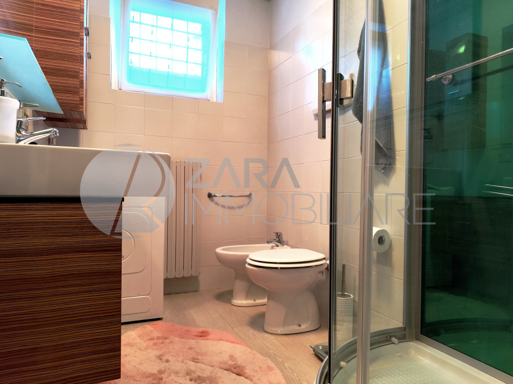 Ingresso, ampio soggiorno con cottura, camera matrimoniale, bagno e ripostiglio. Dal soggiorno si accede al piano interrato con una stanza e un bagno (ottimamente illuminato e arieggiato con bocche di lupo). Comodo portico con vista lago e giardino privato che si collega con il parco condominiale. Completano la proprietà un garage, un posto auto e una cantina.