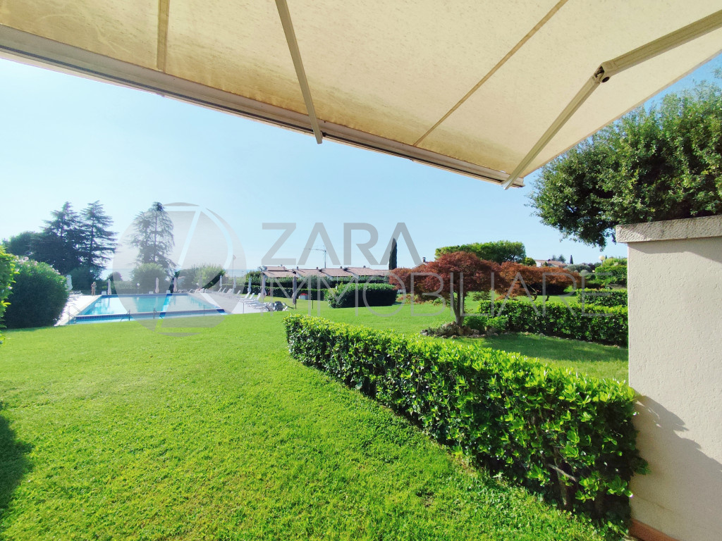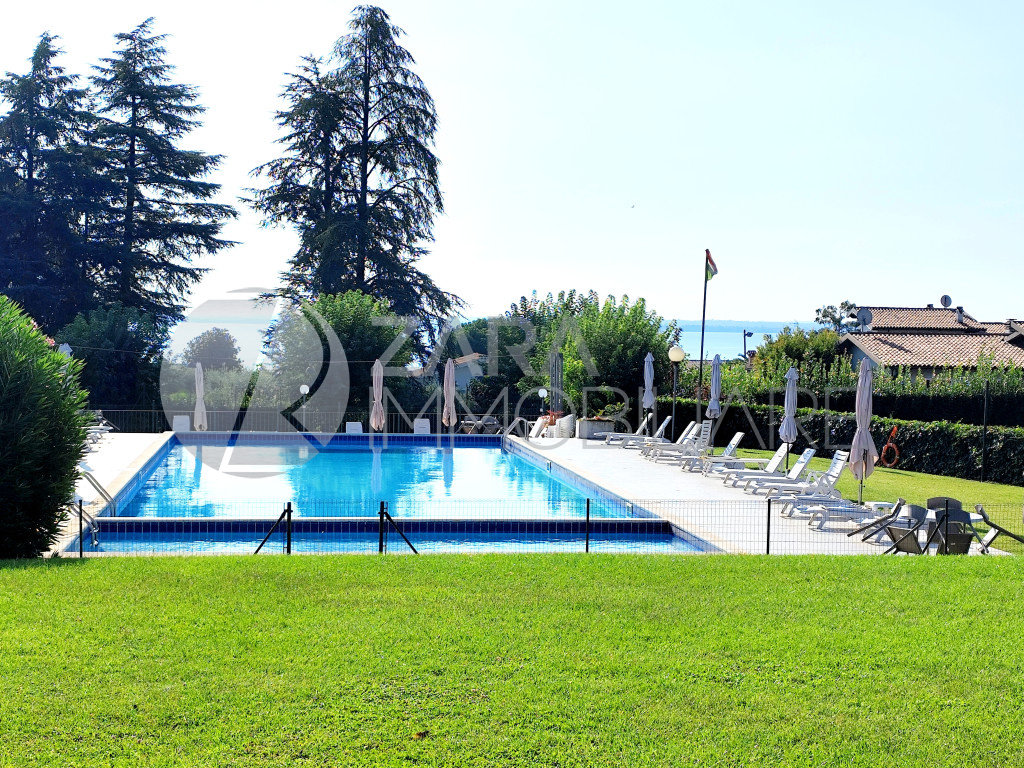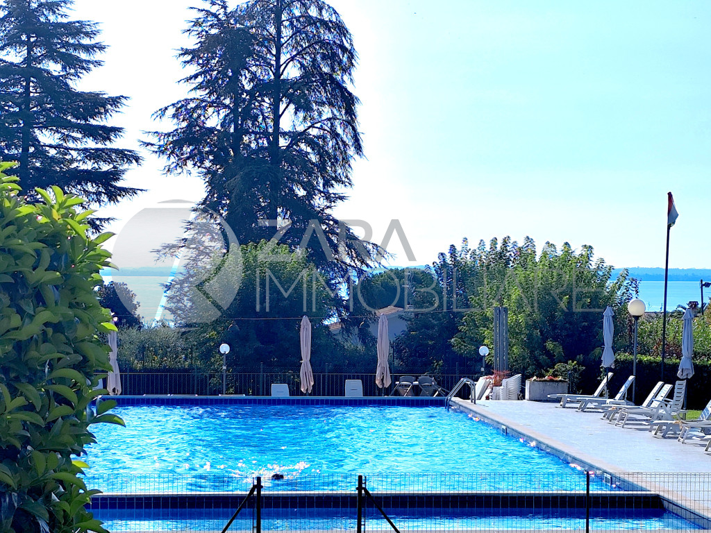 In esclusivo contesto residenziale con custode, con incantevole vista lago e a 250 metri dal porto, ottimo appartamento a piano terra già oggetto di ristrutturazione.