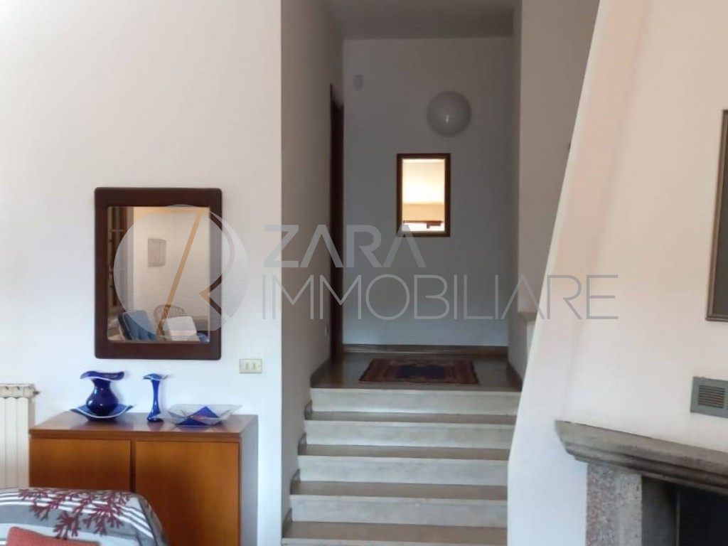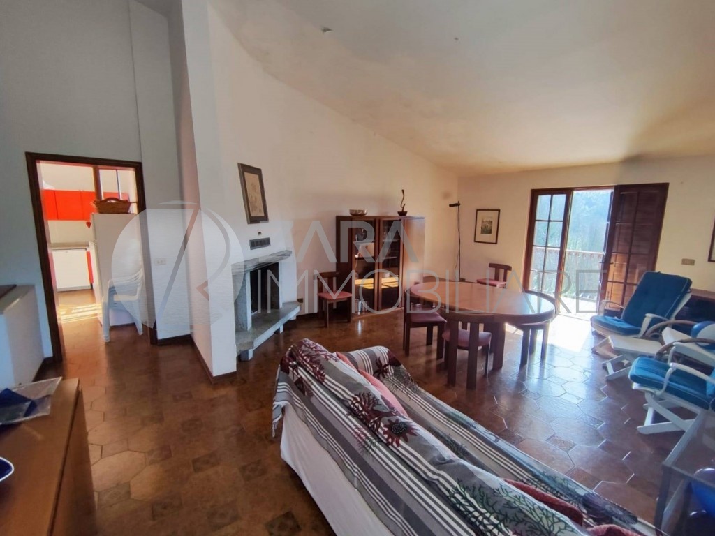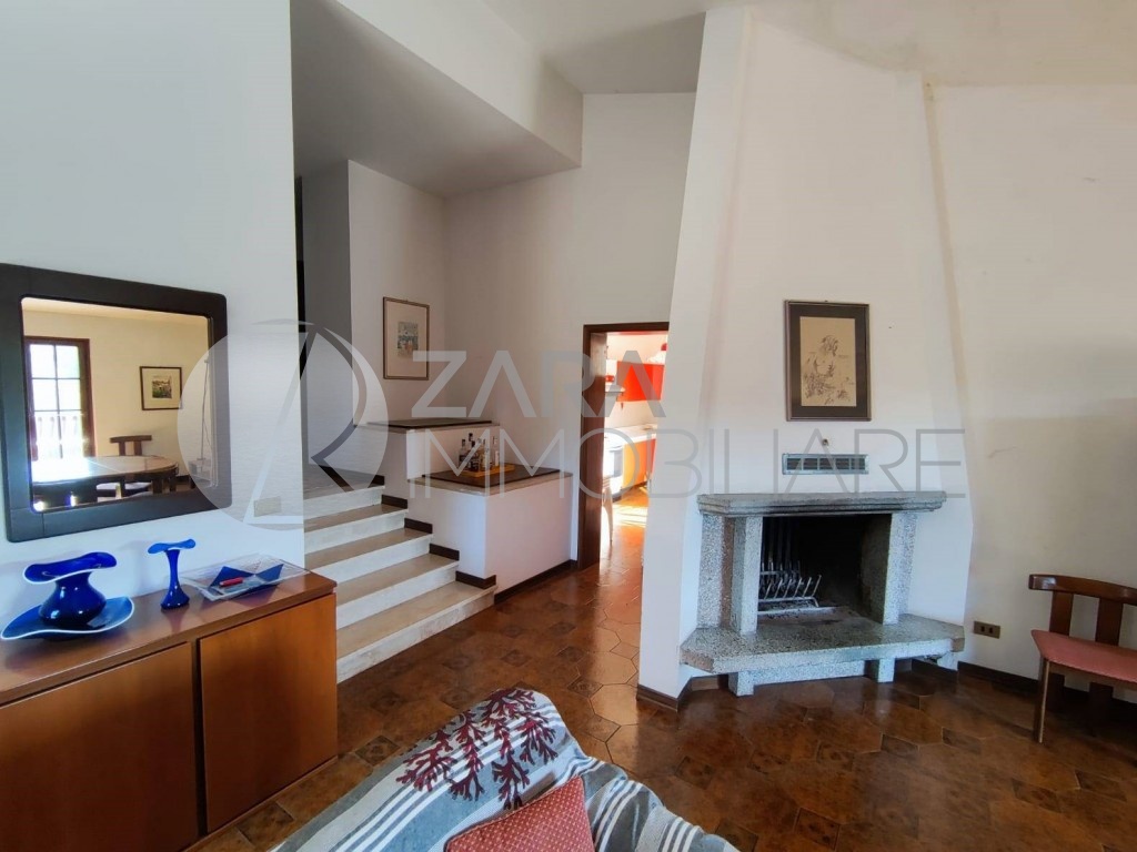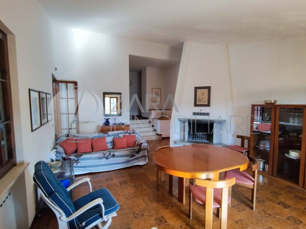 La villa viene venduta completamente arredata e presenta camino nel soggiorno e un ampio terrazzo che si affaccia sul verde circostante.