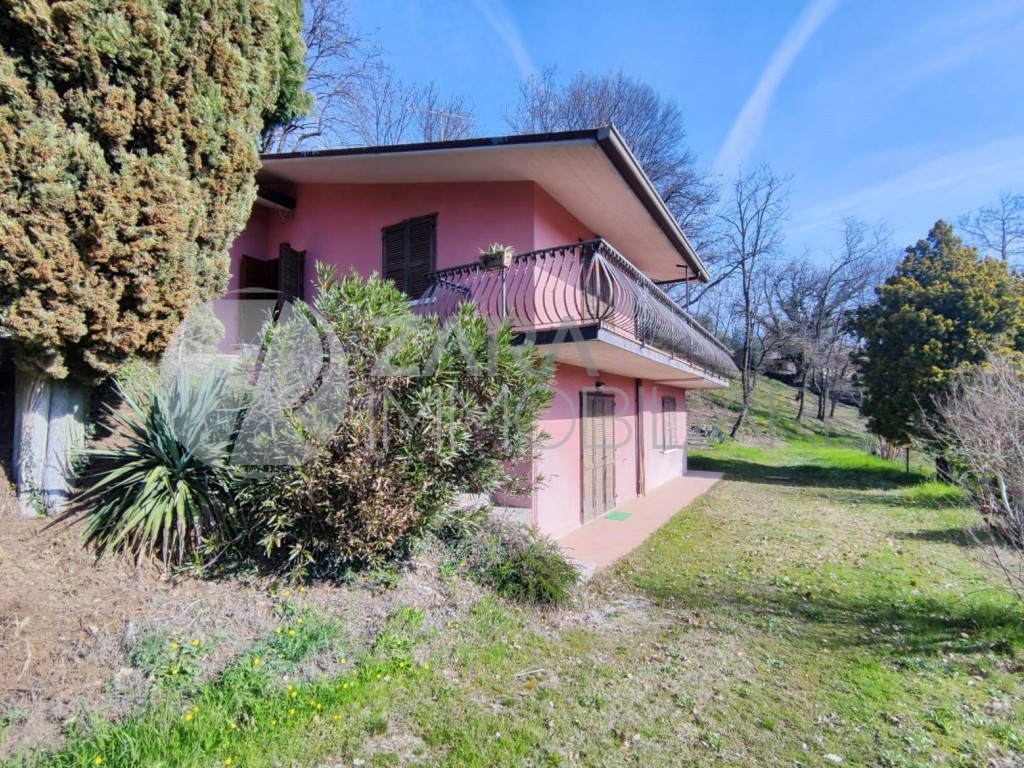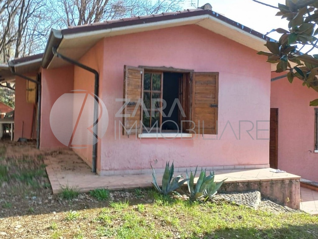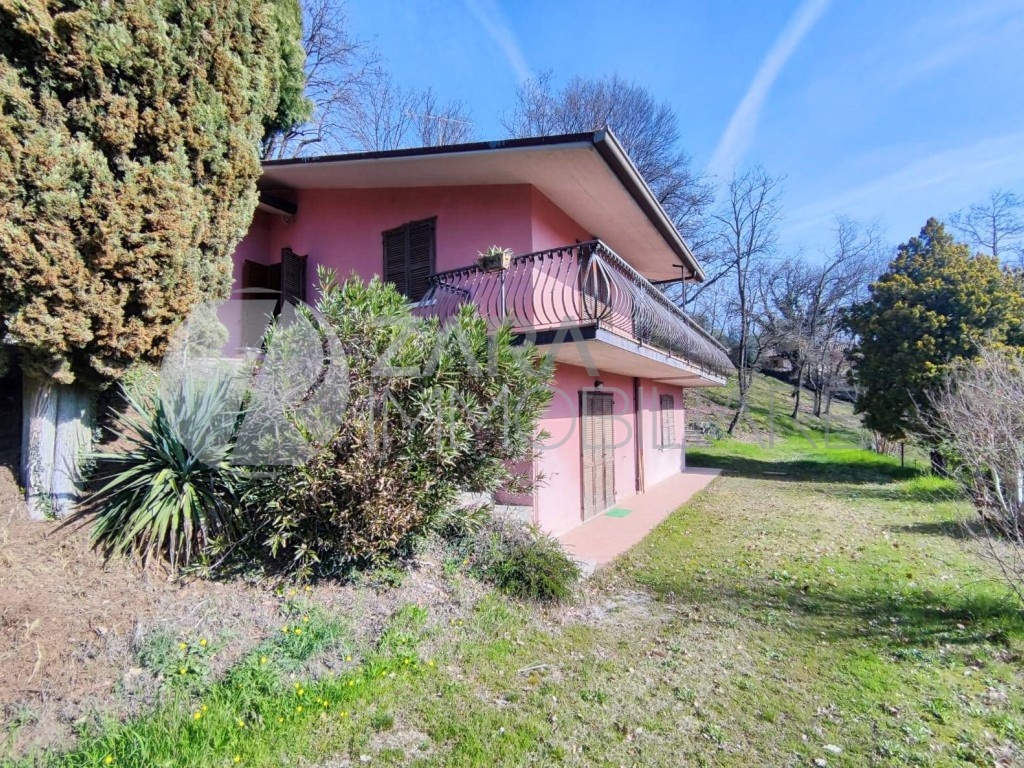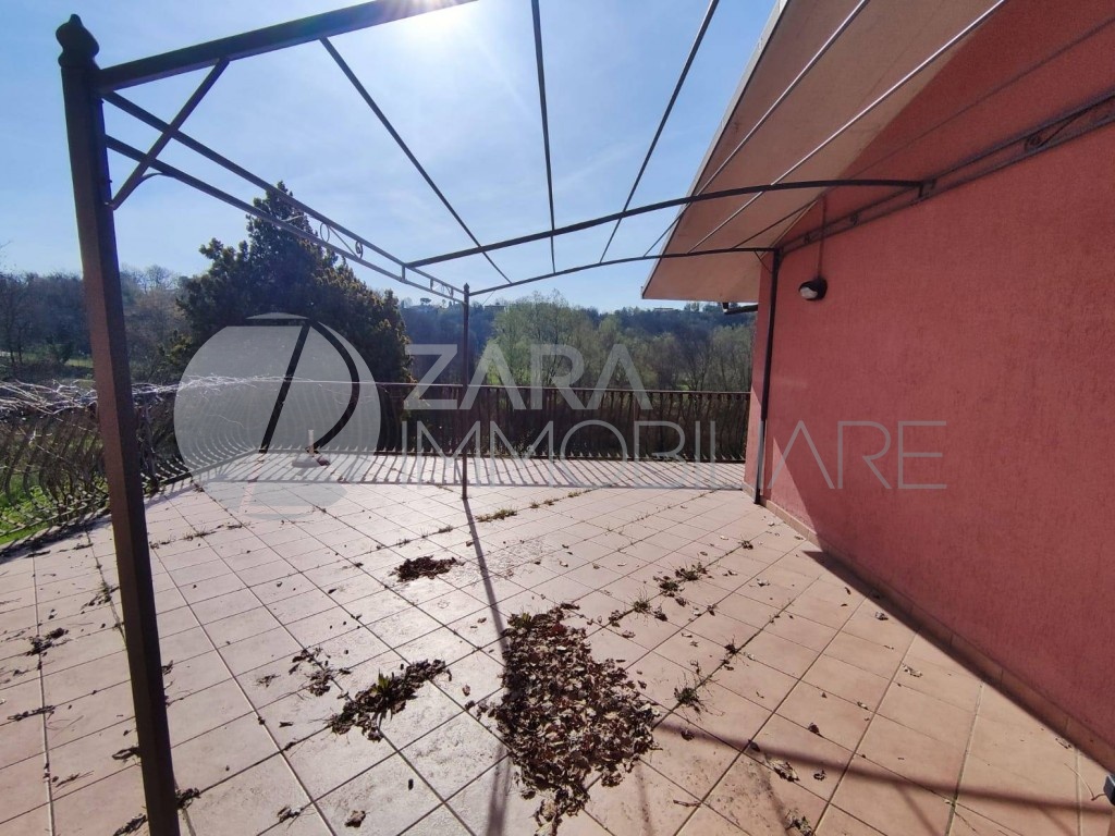 La villa viene venduta completamente arredata e presenta camino nel soggiorno e un ampio terrazzo che si affaccia sul verde circostante.